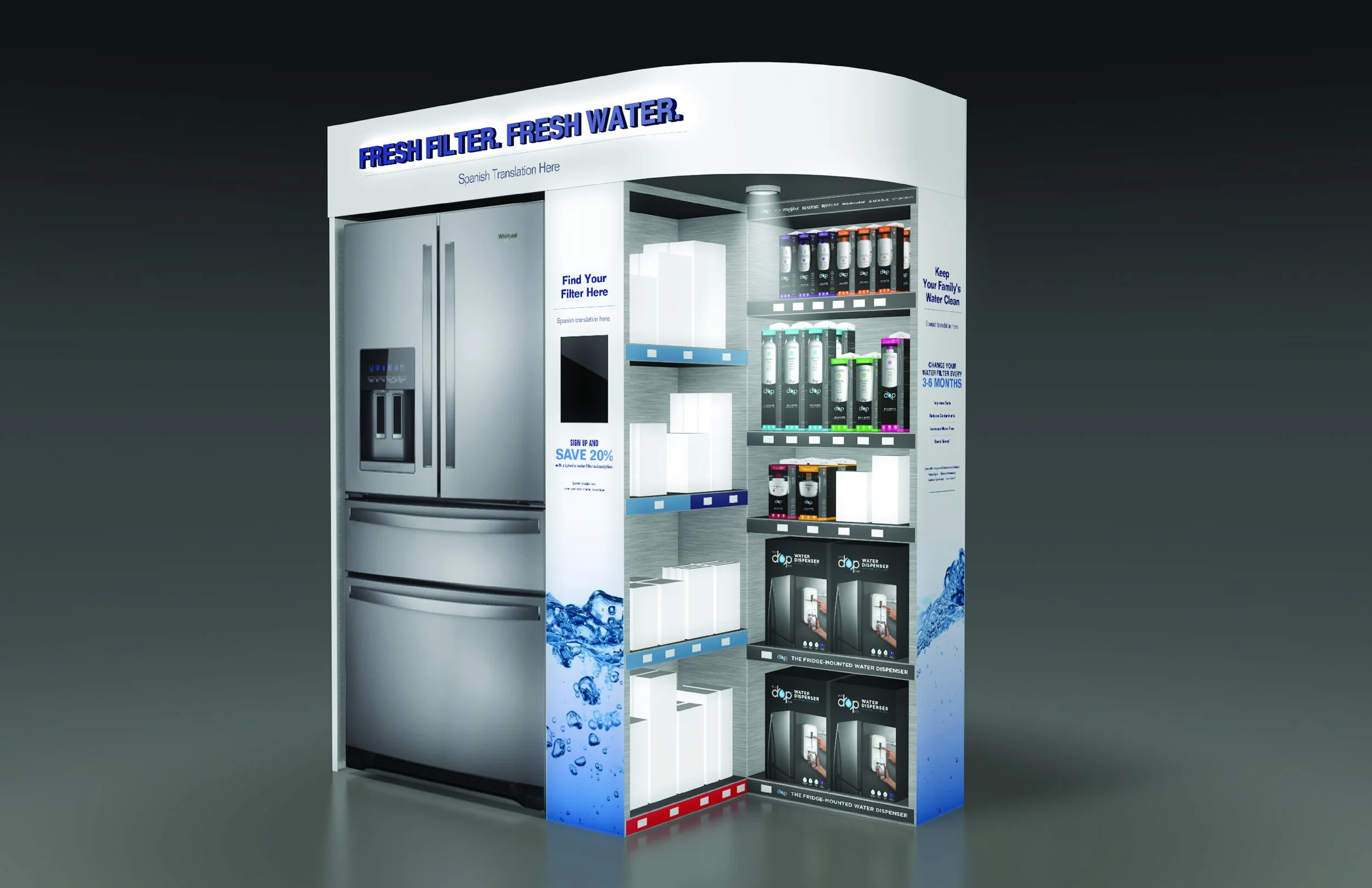 Atlas Tube Tradeshow Grundfos Headquarters Gladiator Endcap Customization Experience New Balance Women Made in the USA Maytag Kitchen Suite Maytag Laundry Display EveryDrop End Cap