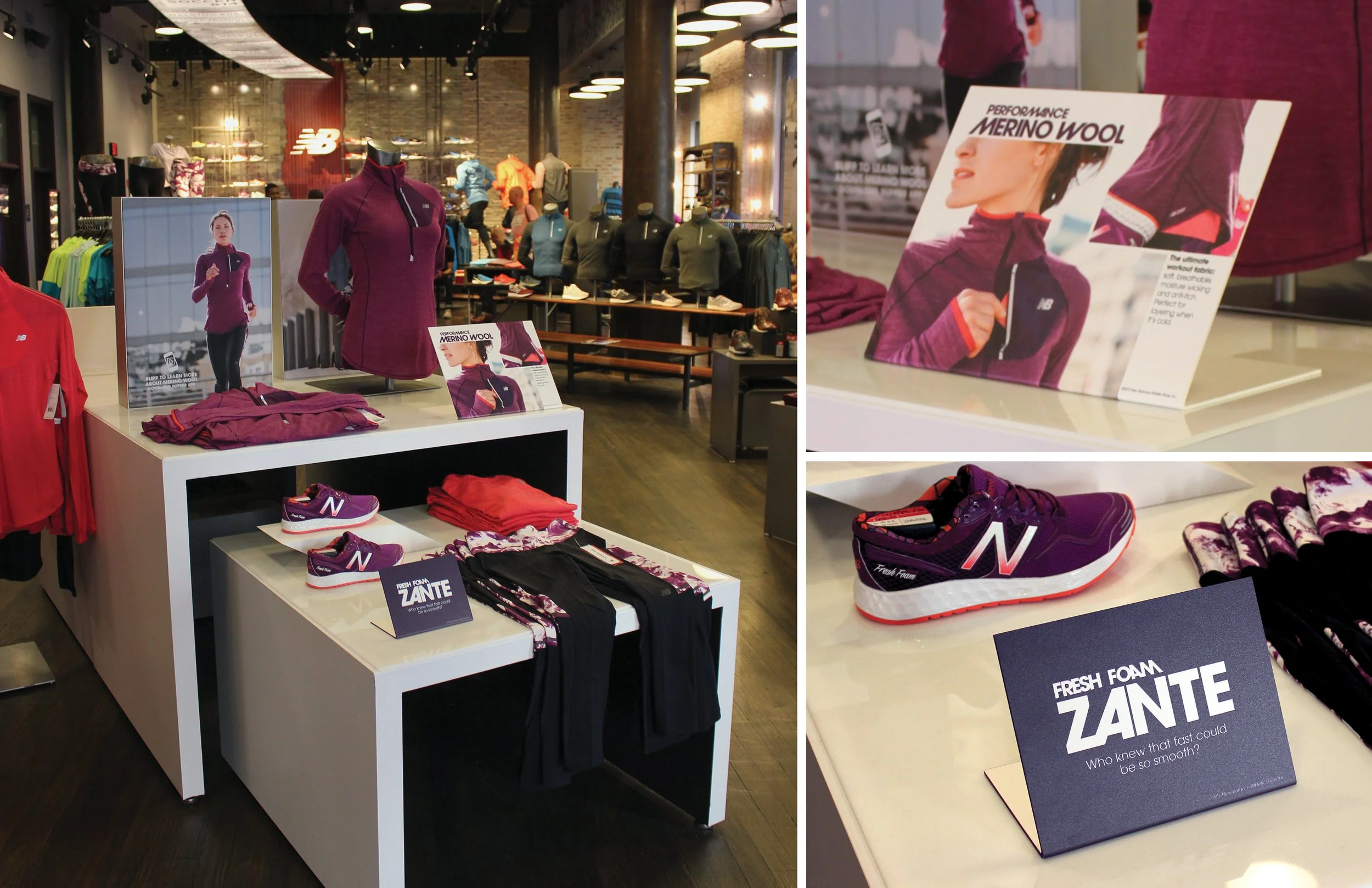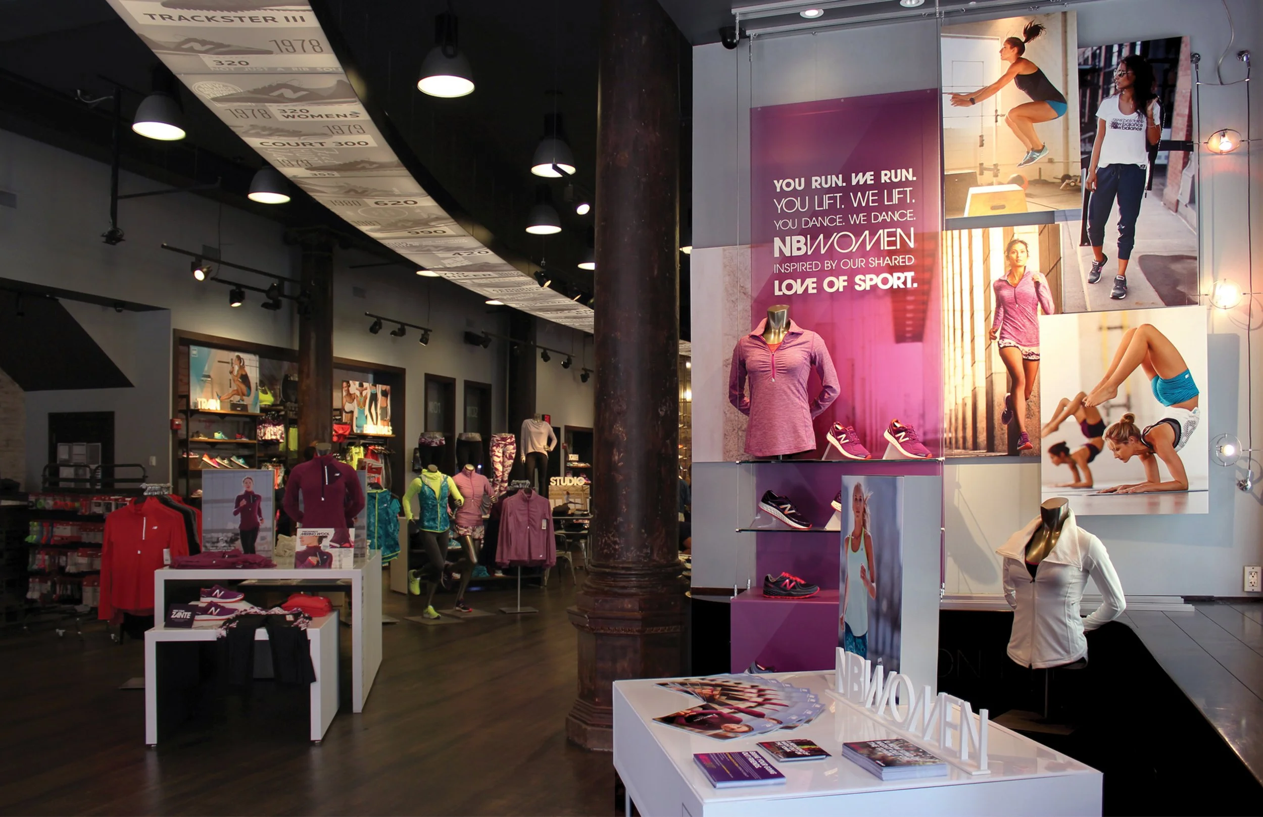 This in-store activation was designed for New Balance's NBWOMEN catalog launch. The story brought the catalog to life throughout the shopper journey — from digital activations through the shopper experience, including window and table displays.