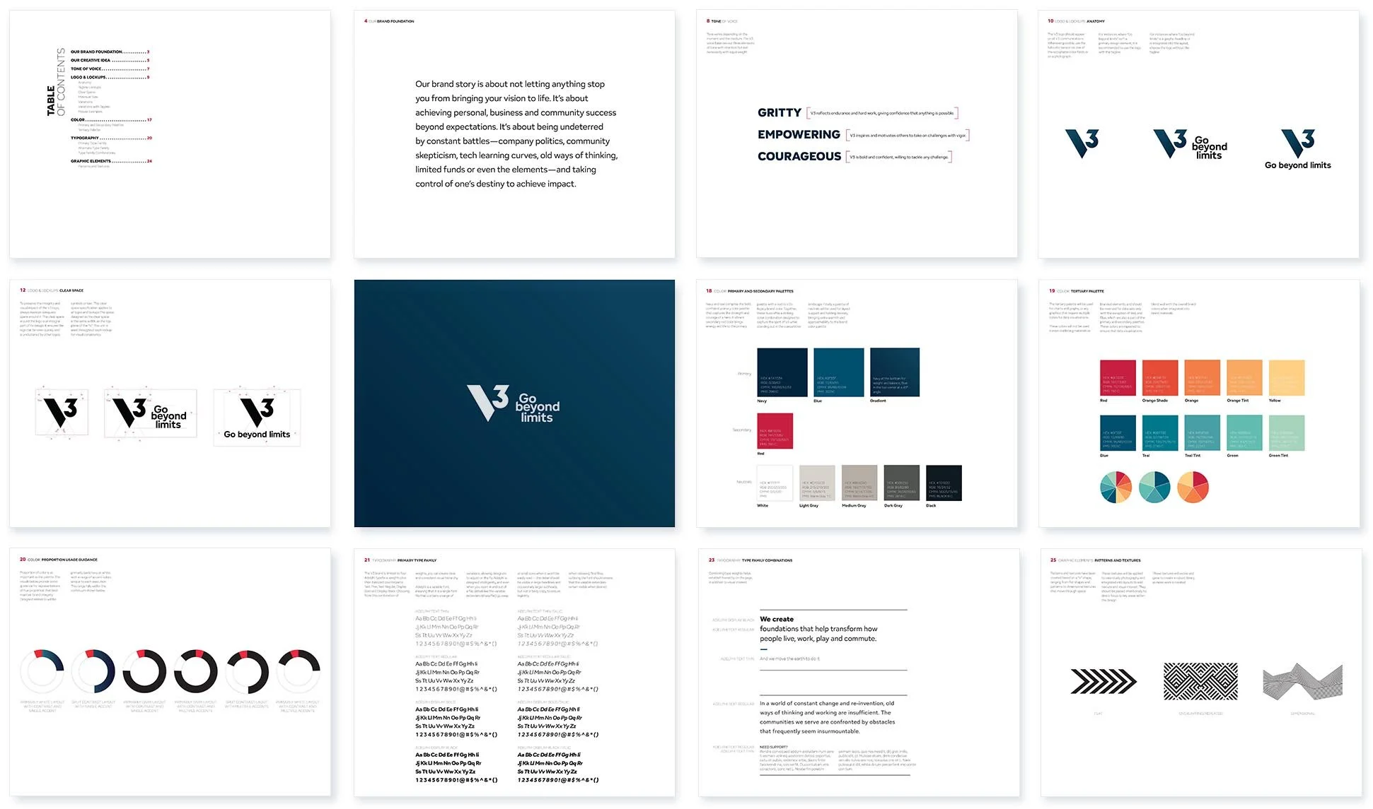 We repositioned the brand around a new platform, Go Beyond Limits, shifting V3 from a conventional Builder mindset into a Hero archetype. The strategy and visual identity reflect a team that never takes “no” for an answer, creating foundations that transform how people live, work, play, and move, and quite literally moving the earth to do it.